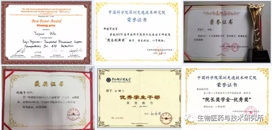 每年多次的国内国际学术交流机会,拓宽学生视野。培养多名优秀学生,获得国家或中科院多项奖学金,荣获深圳市10佳青年、国家奖学金、院长创新奖等多项奖项,发表多篇ACS Nano,Biomaterials,Advanced Materials等高水平杂志文章。毕业后出国出境,前往国际高等学府深造,如哈佛大学、密歇根大学、哥本哈根大学、安德森癌症中心、香港大学、杜兰大学、伦敦大学学院、爱丁堡大学、伦敦国王学院等。